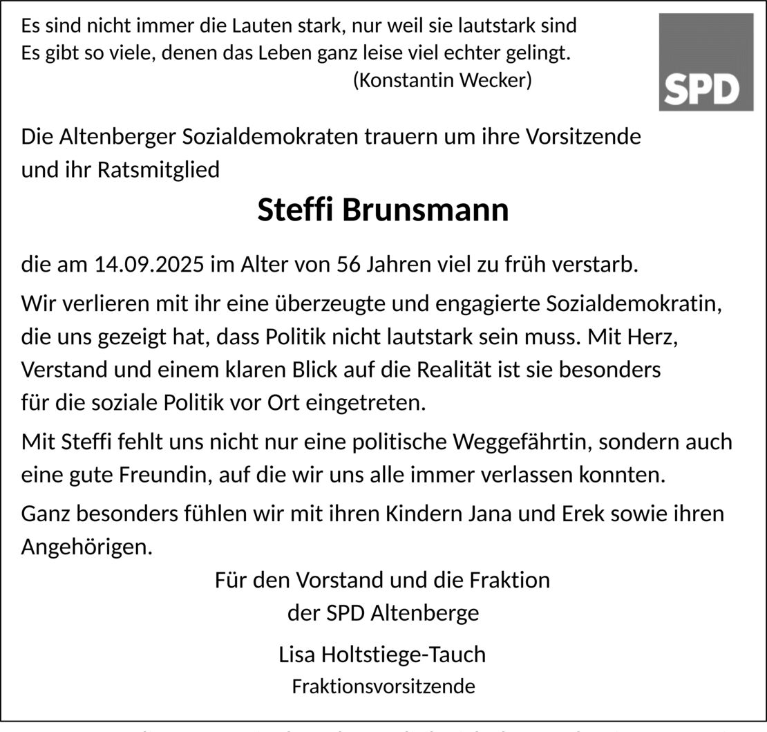 Der SPD Ortsverein-Altenberge trauert um Steffi Brunsmann